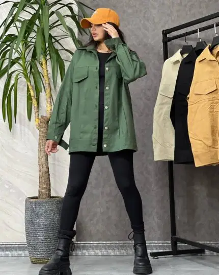 شومیز زنانه با طراحی مدرن و کاربردی، مناسب برای استایل پاییزه. • رنگ‌بندی: سبز، مشکی، کرم،نسکافه ای • سایز: فری سایز • جنس: پارچه ضد آب با آستر نرم • قد کار: تا روی باسن • ارسال: 3 روزه به سراسر کشور • دارای جیب‌های بزرگ